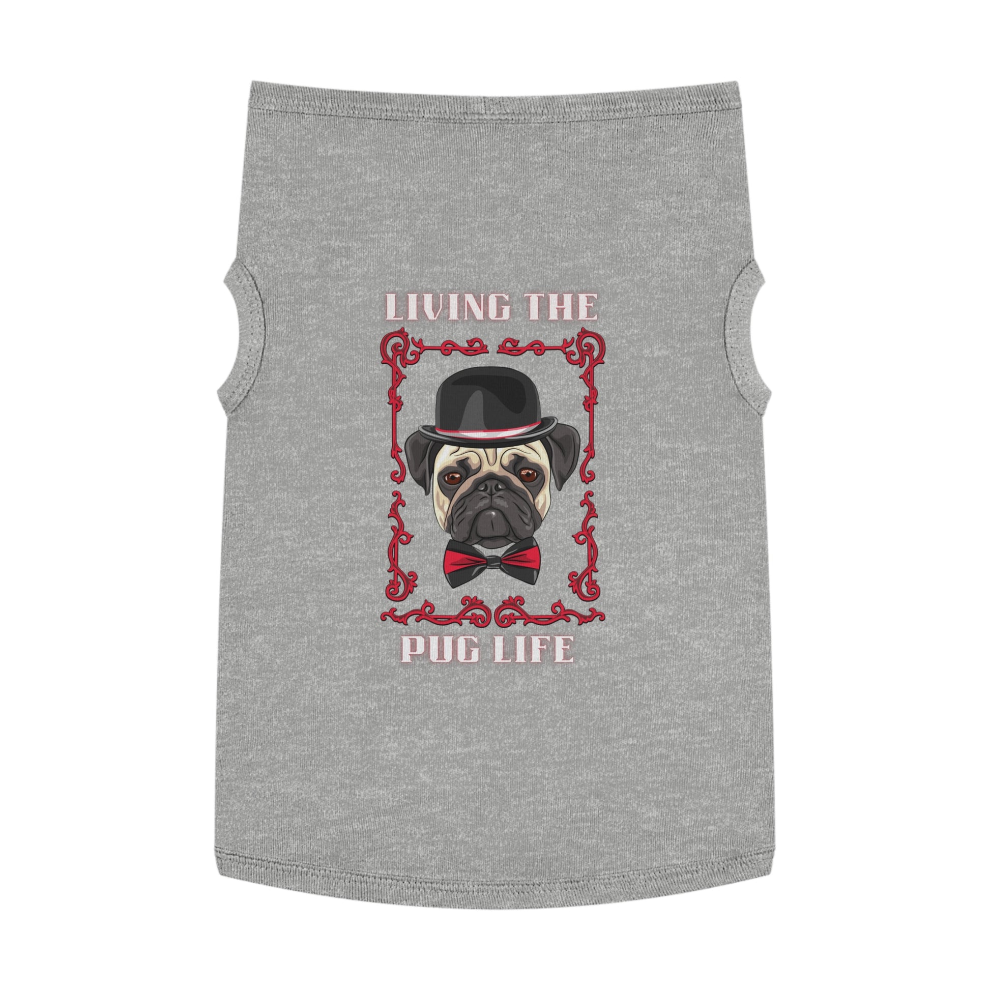 Custom pet clothes are more than just good fashion, they're also perfect for keeping your tiny (or not so tiny) friend warm. This pet tank is 100% cotton for base colors but includes polyester in heather variations. It is safe to machine wash and comes in multiple sizes: M - XL. For breeds with larger chests, sizing up is recommended.