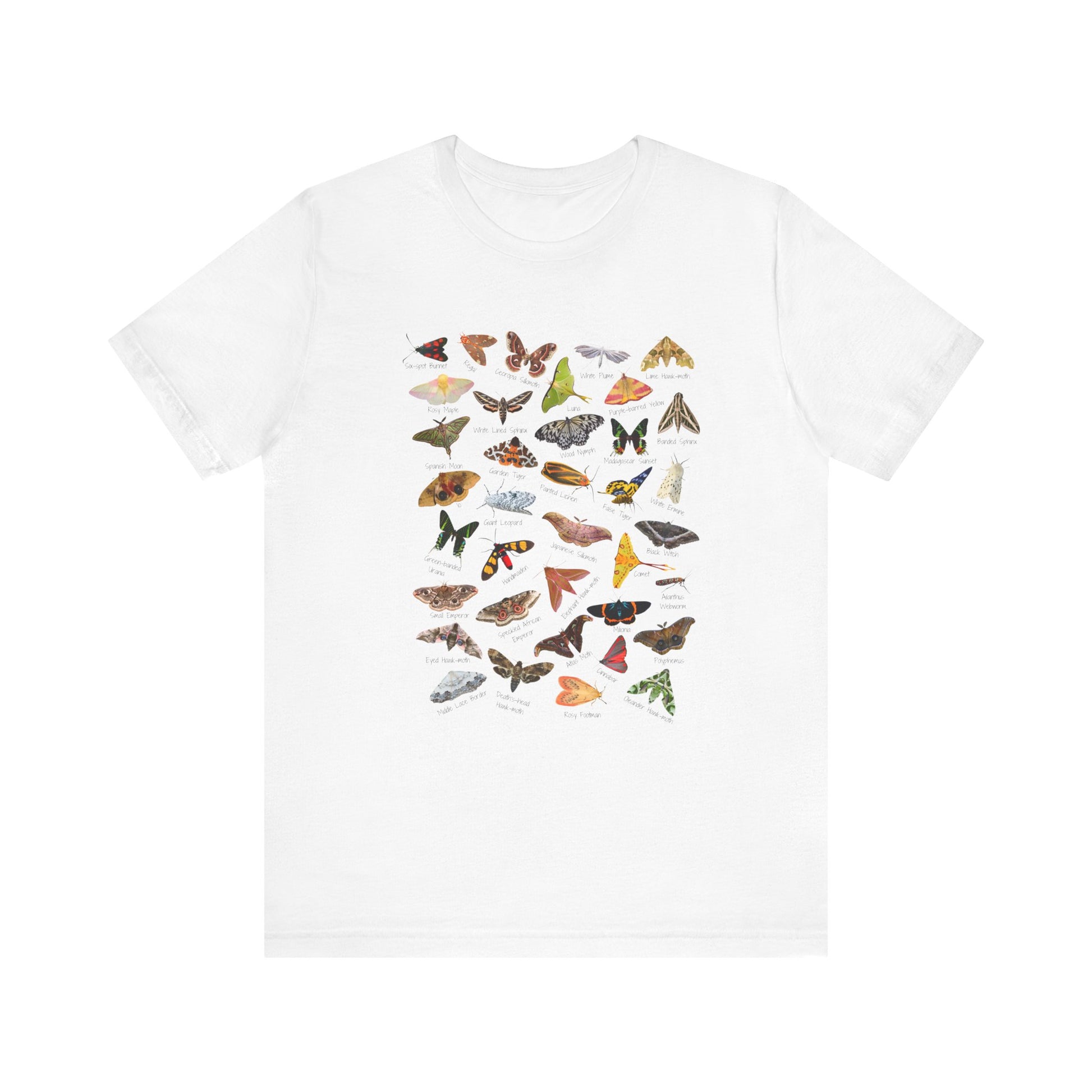 Don't let butterflies get all the attention, there are plenty of jaw dropping marvelous moths out there too. We have taken some of our favorites and put them together in this design. You will find the following here: a six-spot burnet, a regal, cecropia silkmoth, a luna, a white plume, purple-barred yellow, lime hawk-moth, banded sphinx, Madagascar sunset, wood nymph, white lined sphinx, rosy maple, spanish moon, garden tiger, painted lichen, false tiger, white ermine, a black witch, Japanese silkmoth, giant leopard, an io, green-banded Urania, handmaiden, an elephant hawk-moth, a comet, ailanthus webworm, Milionia, atlas moth, speckled african emperor, a small emperor, an eyed hawk-moth, a middle lace border, a death's-head hawk-moth, a rosy footman, a cinnabar, a polyphemus, and an Oleander hawk-moth. Which of these beauties is your favorite?